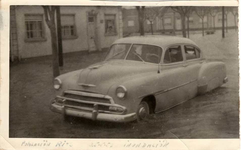 Inundación en calle 2 norte 7 y 8 oriente, Población Juan Antonio Ríos. Talca, año 1953