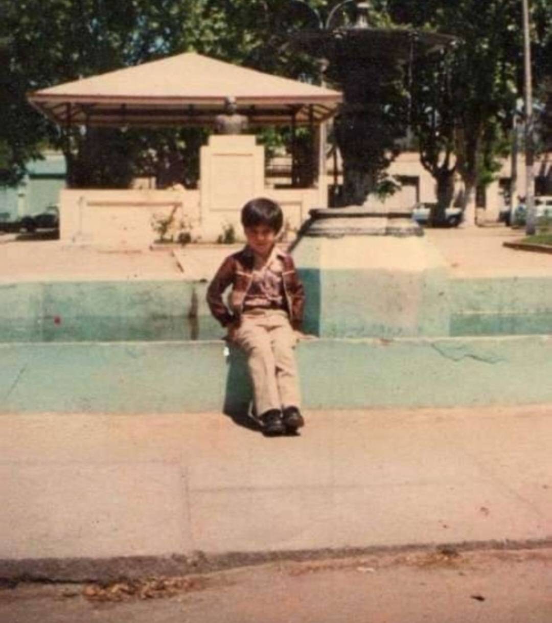 Joven posa en pileta de Plaza Las Heras de Talca, s.f.