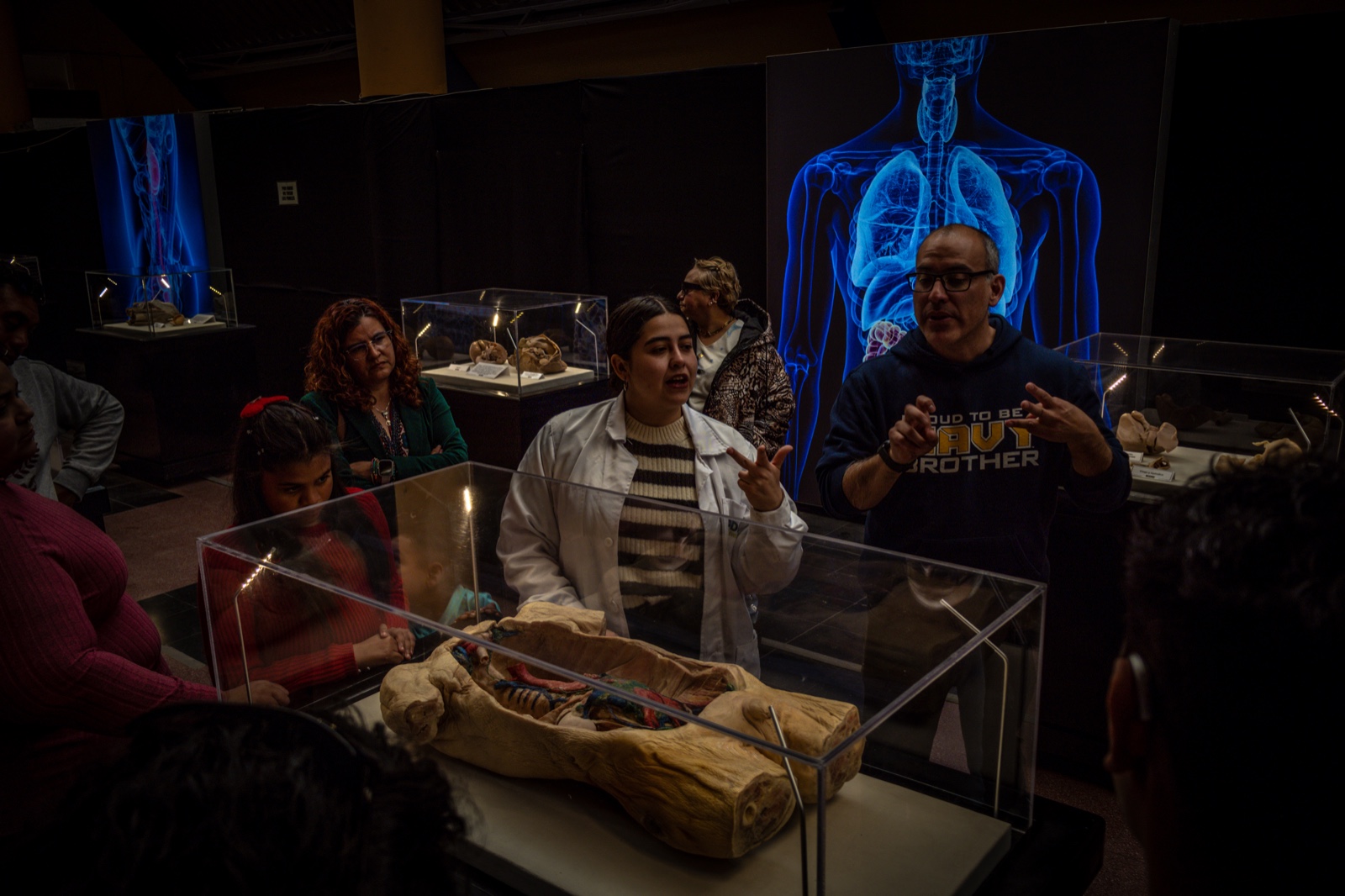 La muestra está organizada temáticamente, permitiendo un recorrido detallado por los principales sistemas del cuerpo humano: óseo, muscular, nervioso, circulatorio, digestivo, respiratorio, urinario y reproductor. Un valor agregado fundamental son las visitas guiadas por profesionales de la salud, quienes entregan una visión experta y pedagógica de cada sección.